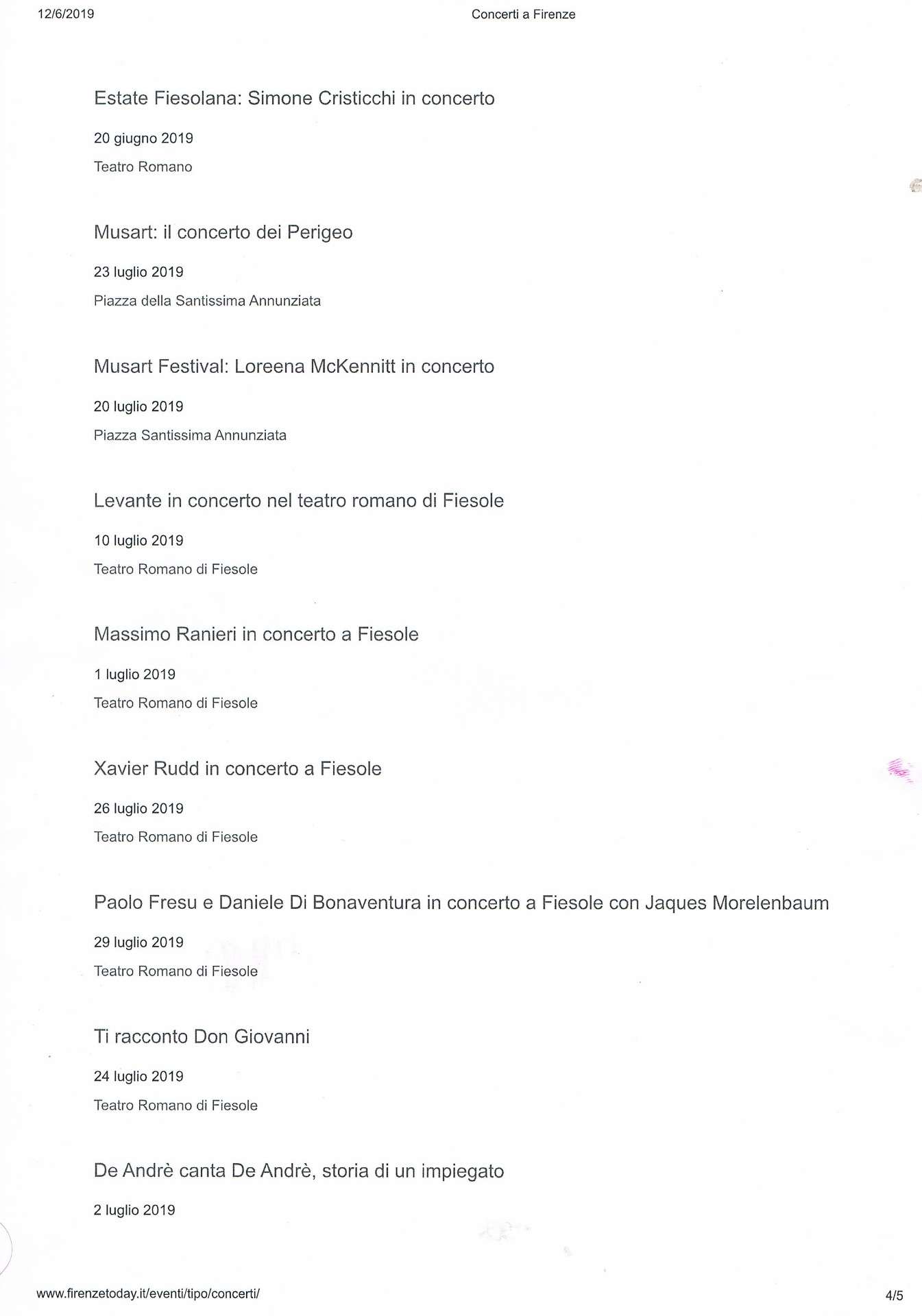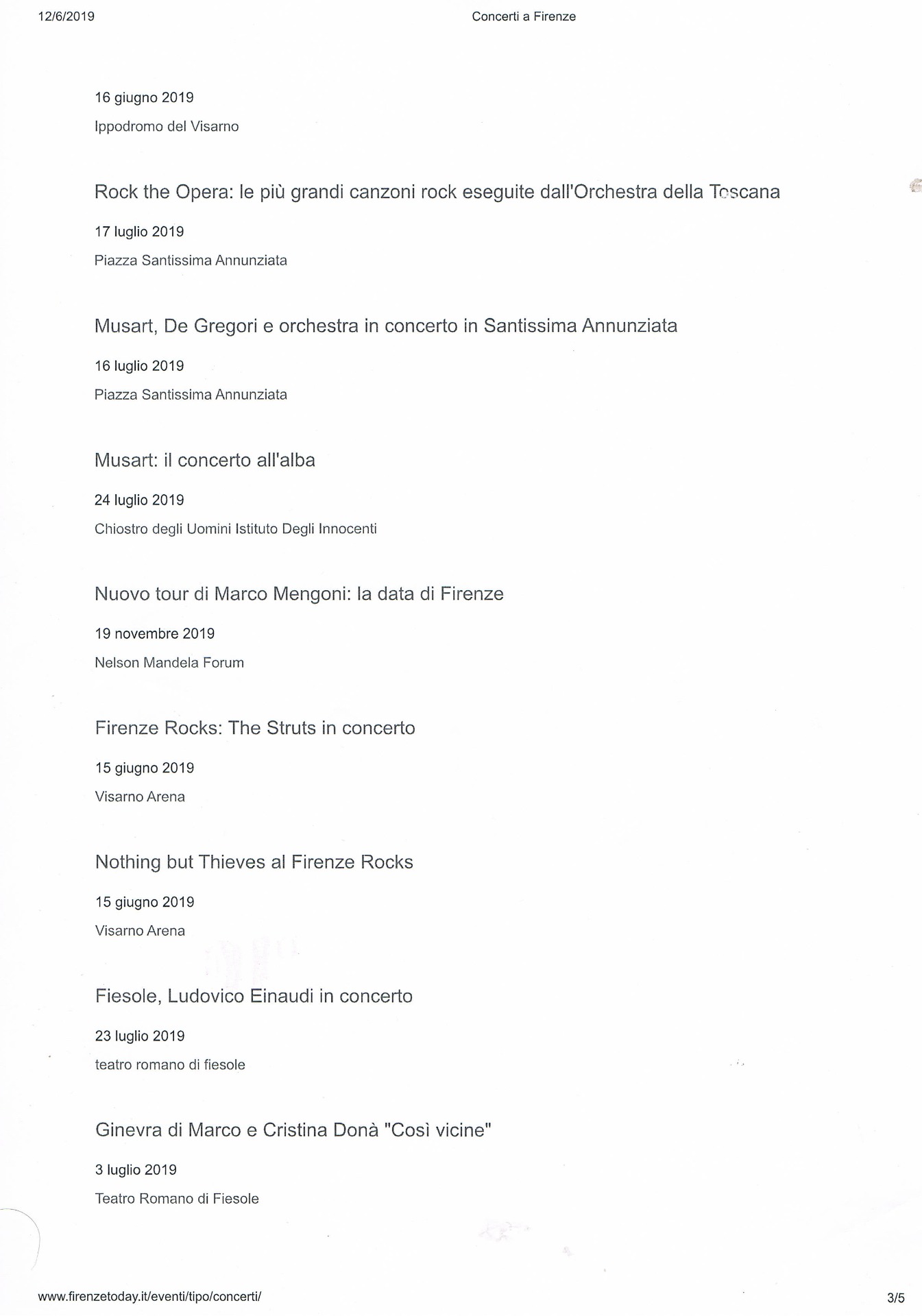 CONCERTI FIRENZE CALENDARIO 2019 DA OTTOBRE 2019 A LUGLIO 2020