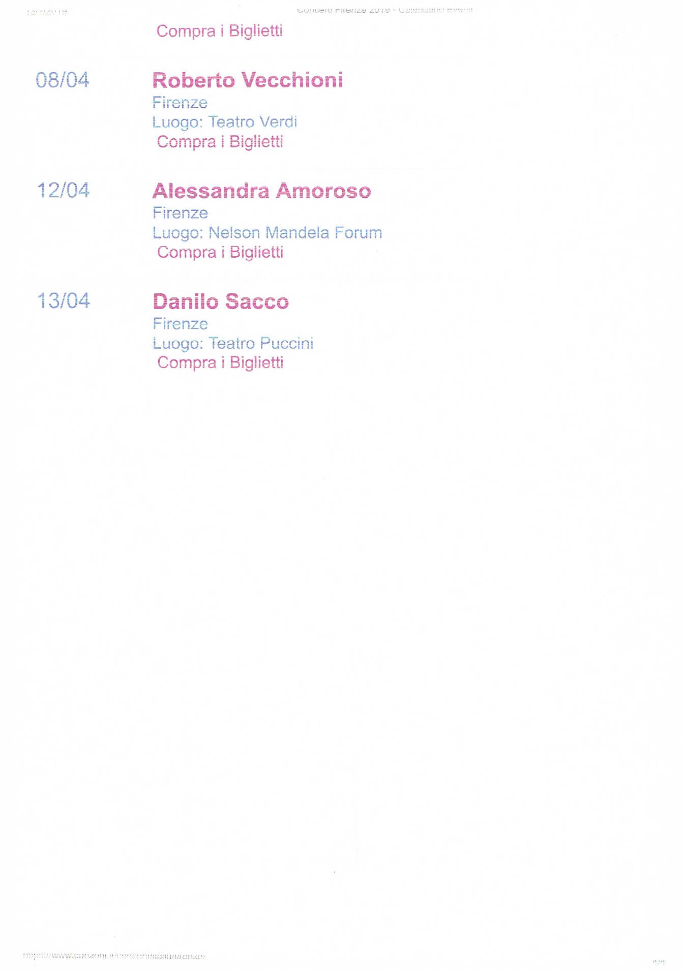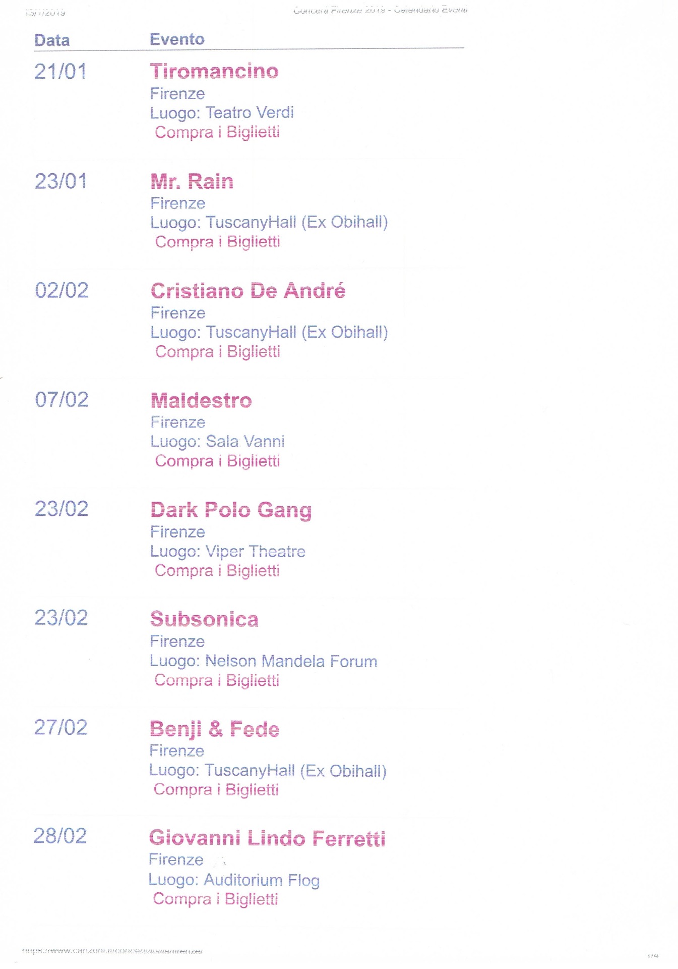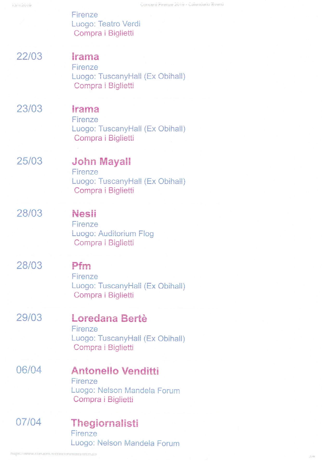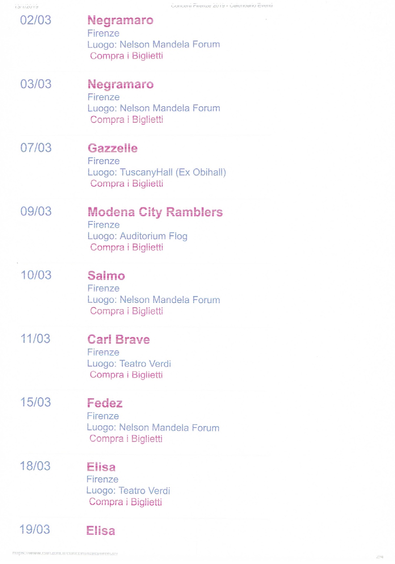 CONCERTI FIRENZE CALENDARIO 2019